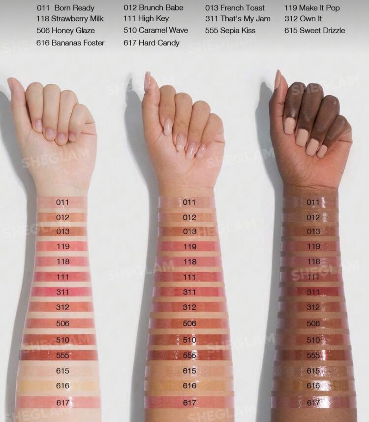 ۵۱۰ caramel wave ,617 hard candy ,۶۱۵ sweet drizlle ,۰۱۳ french toast ,high key 111 |